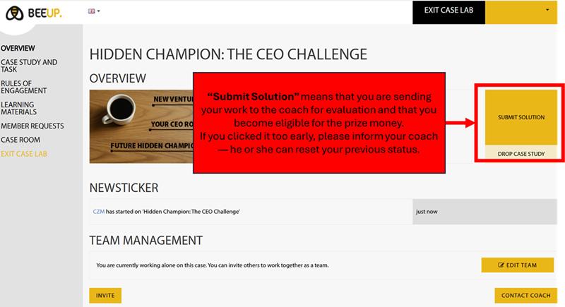 Communication with the coaches will take place through the coach-team channel. In the first coaching session, the coach may share their WhatsApp number with you; however, for data privacy reasons, all task-related submissions must be shared exclusively in the coach-team channel. You can organize your coachings by WhatsApp, if you want, like "I want to meet you next Tuesday", or "I'll deliver only tomorrow.".